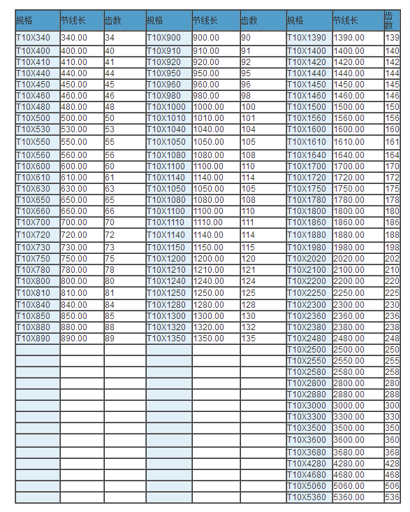 同步帶技術(shù)參數