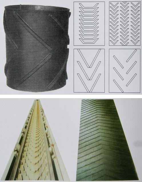 花紋輸送帶是由帶體和花紋部分組成,由于運送的物料和輸送機傾角大小的不同,要求花紋的形狀和高低(深淺)也不同。