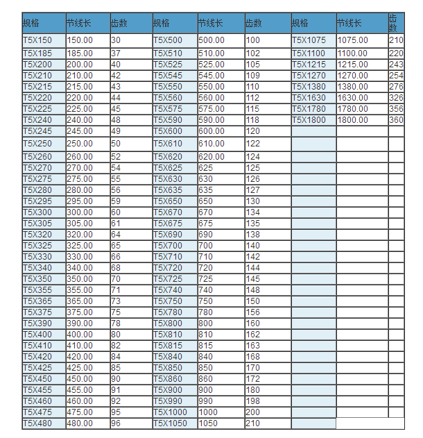 同步帶技術(shù)參數