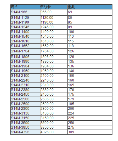 同步帶技術(shù)參數