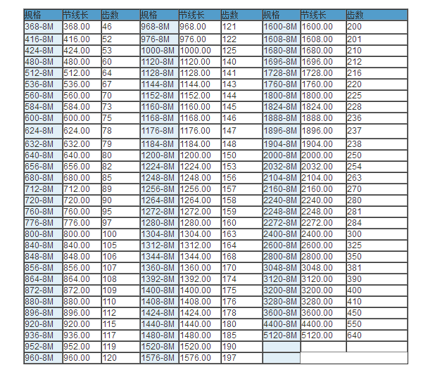 同步帶技術(shù)參數
